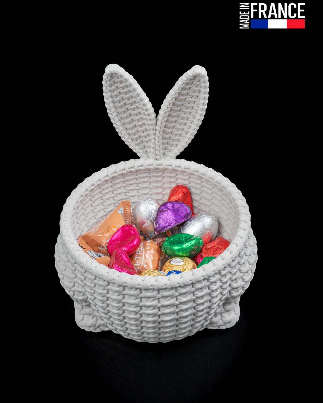Conçue spécifiquement comme un contenant à gourmandises, la Bunny Bowl accueille avec élégance vos bonbons, chocolats ou petites douceurs. Sa forme ouverte et ses courbes fluides permettent un accès facile à vos friandises tout en servant de vide-poche original pour vos petits trésors sur une console d’entrée ou une table basse.