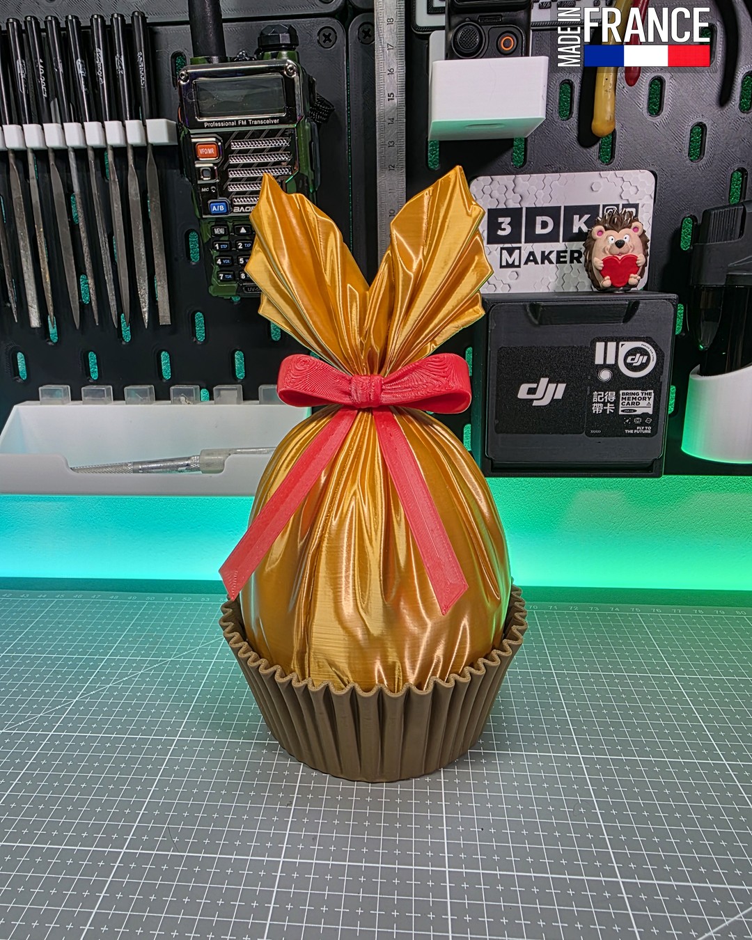 Chaque « Golden Treat » est fabriqué avec soin par impression 3D de haute précision, utilisant des matériaux aux reflets métallisés pour un rendu luxueux sans aucune peinture. L’assemblage des couleurs — or soyeux, rouge rubis et base chocolat — est réalisé directement durant le processus de création, garantissant une tenue parfaite et un aspect haut de gamme durable. Un véritable chef-d’œuvre d’artisanat numérique pour sublimer votre intérieur.