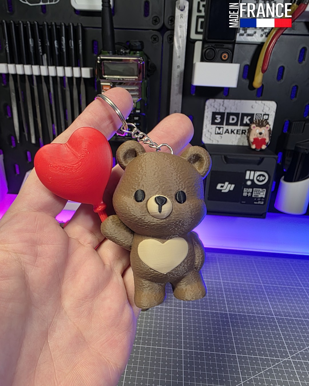 🧸 Heart Up Bear – Porte-clés Décoration 3D – 4 Couleurs