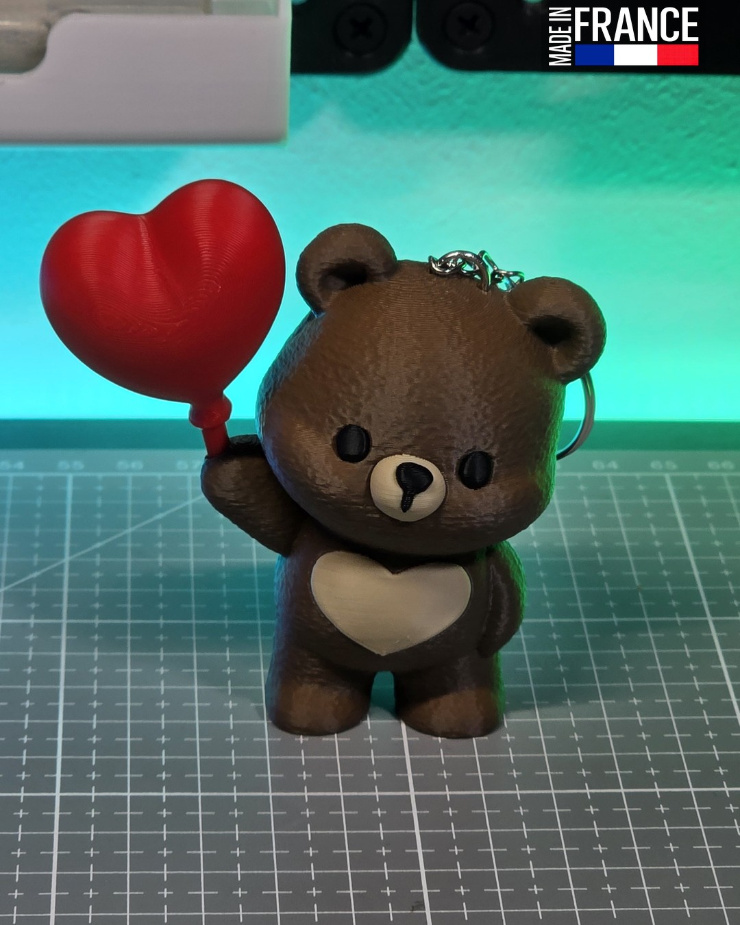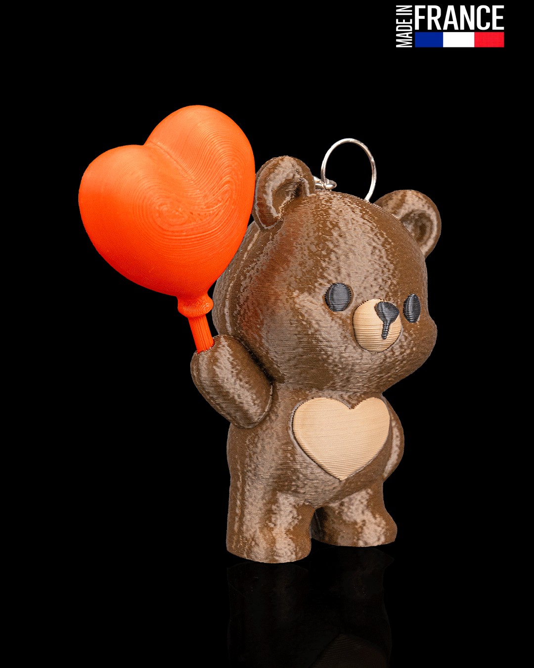 Ce modèle profite d’une conception multi-couleurs précise, mettant en relief chaque détail sans aucun recours à la peinture. La technique d’impression 3D permet de superposer les teintes pour créer un contraste saisissant entre le brun chaleureux de l’ours et l’éclat orangé de son ballon, offrant un rendu visuel unique et texturé.