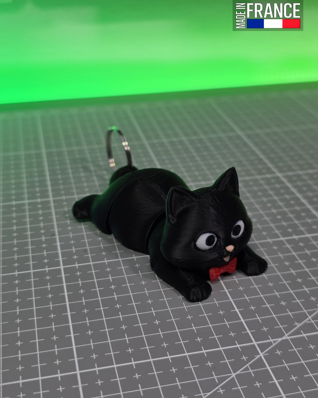 Fabriqué avec passion dans notre atelier en France, ce porte-clés est le fruit d’une impression 3D multicouleurs de haute précision. Les quatre couleurs (le noir profond, le blanc des yeux, le rouge du nœud et le rose du museau) sont intégrées directement dans la masse lors de la fabrication. L’absence totale de peinture garantit une finition durable qui ne s’écaille pas, même après des mois d’utilisation.