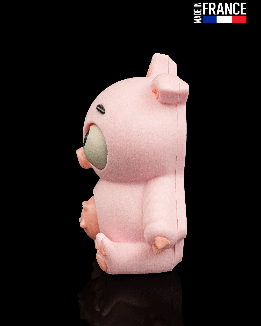 Chaque Pork Belly est fabriqué par impression 3D de haute précision, avec un soin particulier apporté aux finitions. L’utilisation de matériaux colorés dans la masse garantit des couleurs vibrantes et durables qui ne s’écaillent jamais, faisant de chaque exemplaire un petit objet d’artisanat numérique robuste et qualitatif.