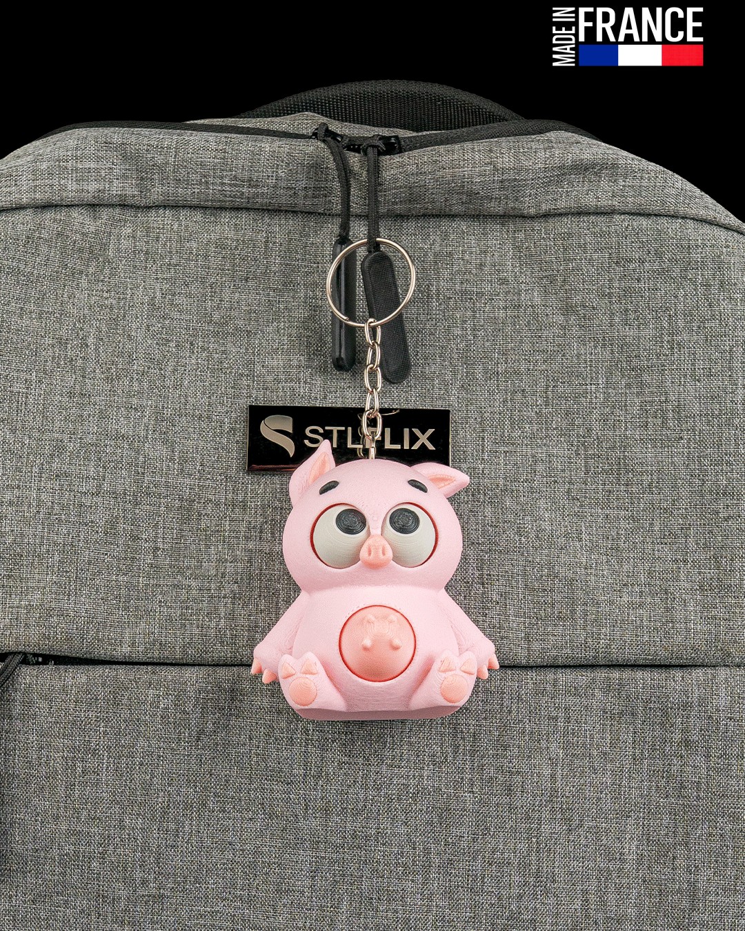 Découvrez Pork Belly, un petit compagnon aux formes généreuses et au regard irrésistible qui ne demande qu’à voyager avec vous. Avec son design tout en rondeurs et sa bouille expressive, ce petit cochon apporte une touche de douceur et d’originalité immédiate à votre quotidien, que ce soit accroché à vos clés ou posé fièrement sur votre bureau.</s