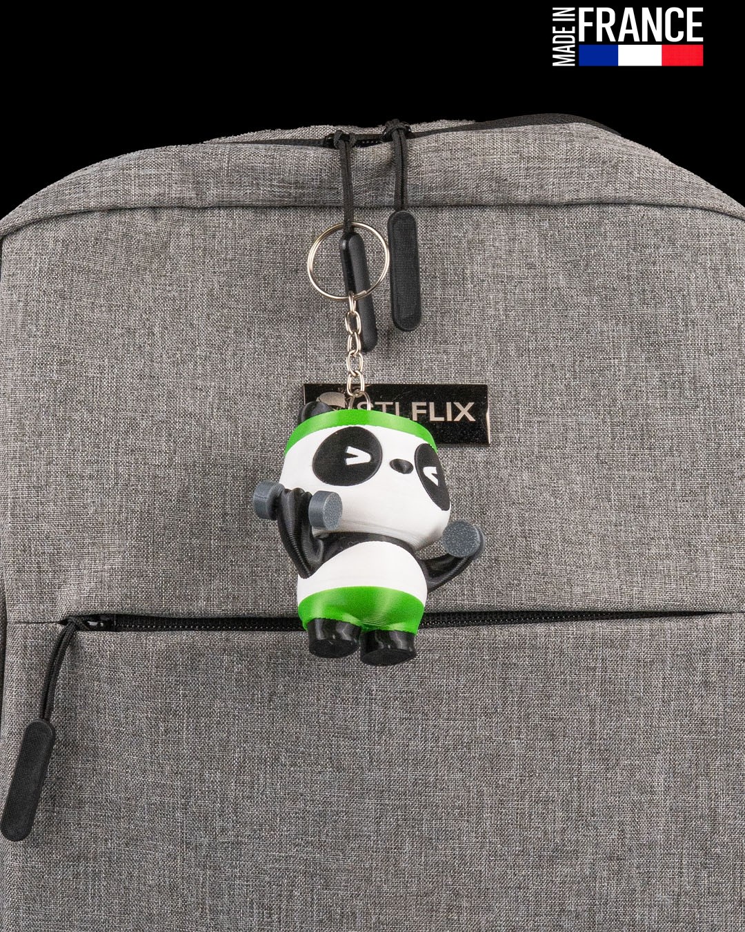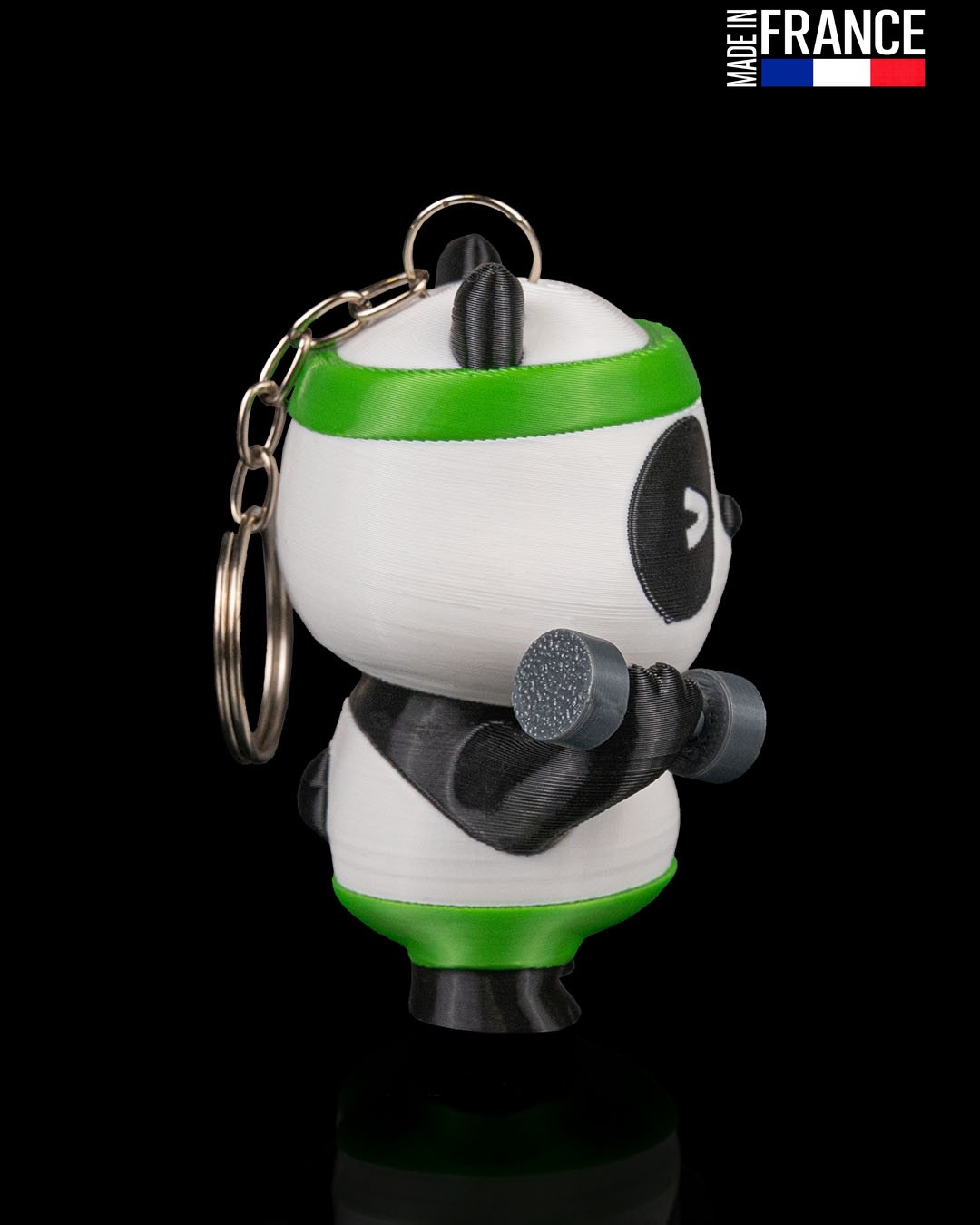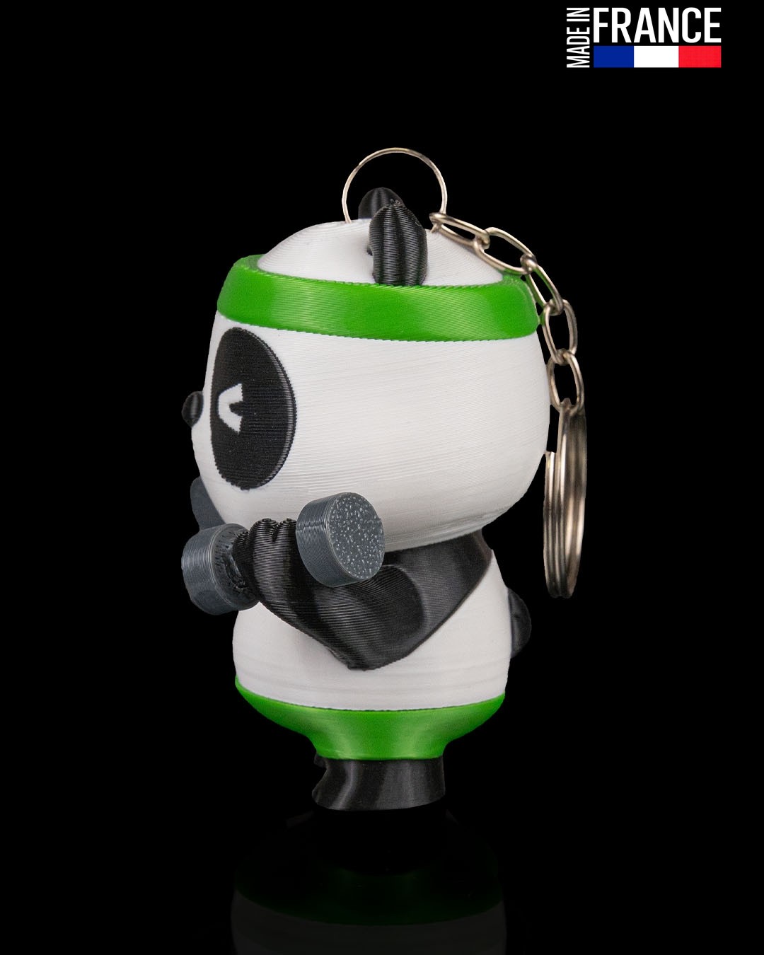 Comme toutes nos créations, Pumpanda est imprimé en 3D avec une précision extrême dans notre atelier en France. Grâce à la technologie multi-couleurs, les nuances de noir, blanc, gris et vert sont directement fusionnées dans la matière. Le résultat ? Une finition impeccable, sans peinture, qui résiste aux chocs et aux frottements pour vous accompagner durablement dans toutes vos aventures (même les plus sportives !).