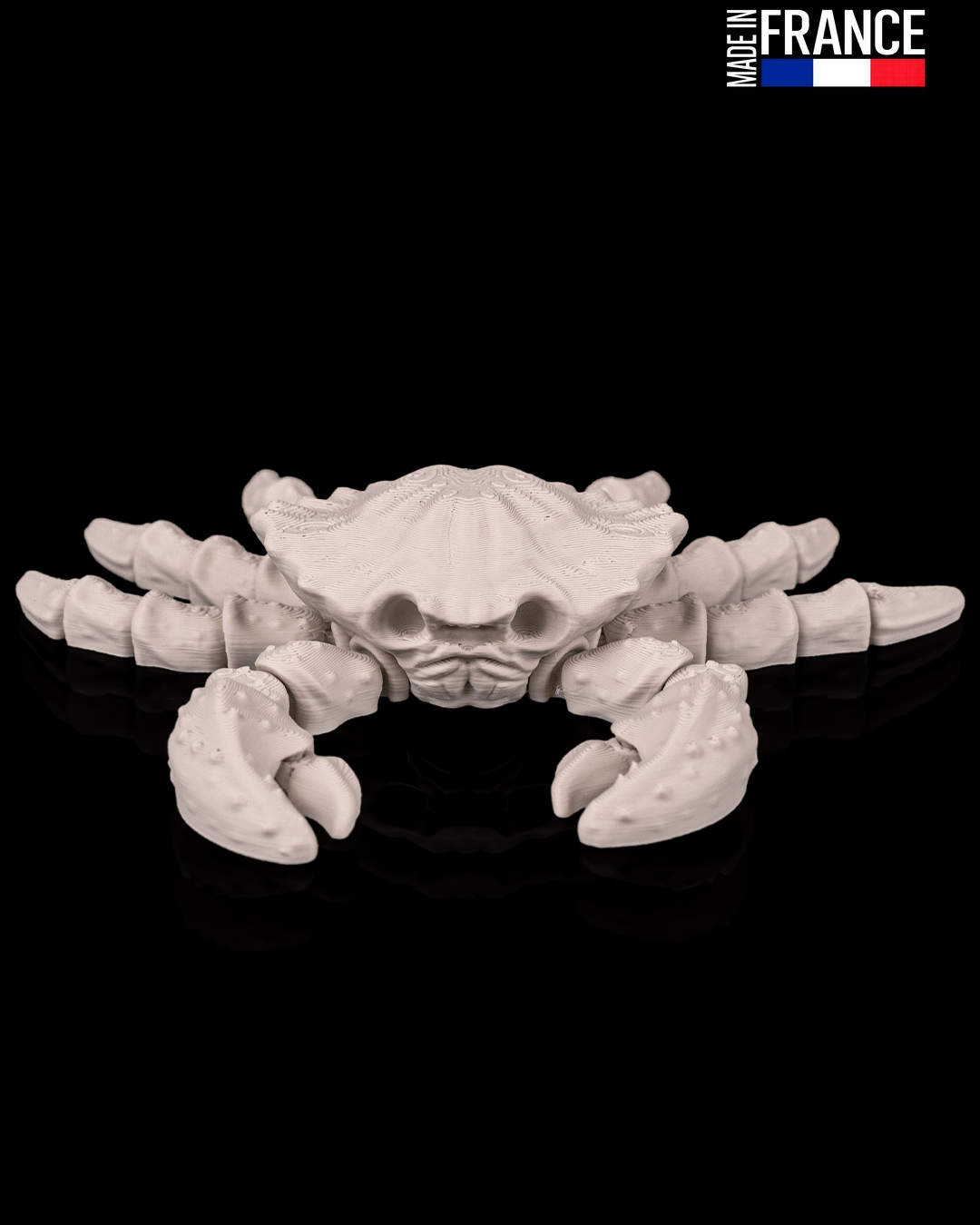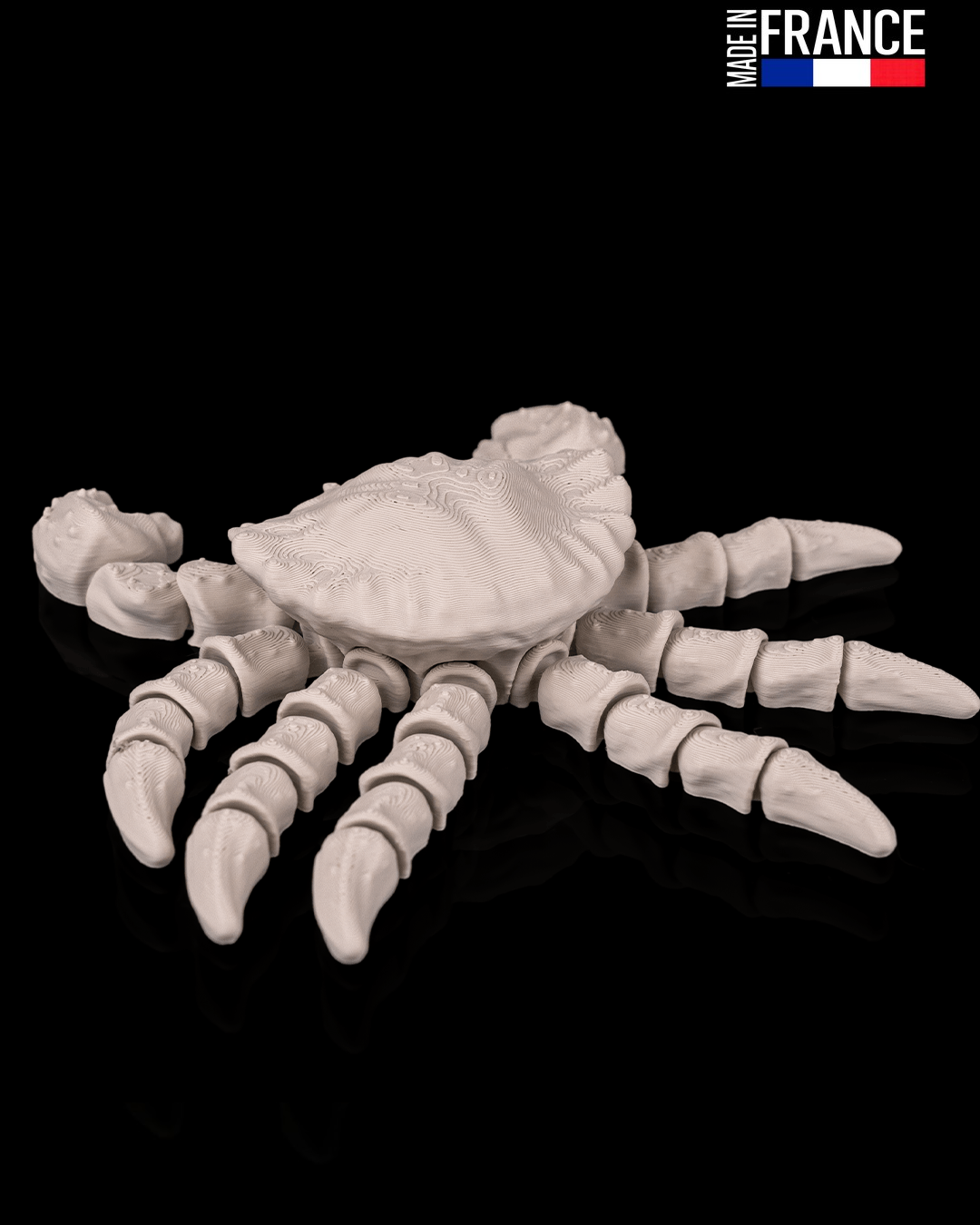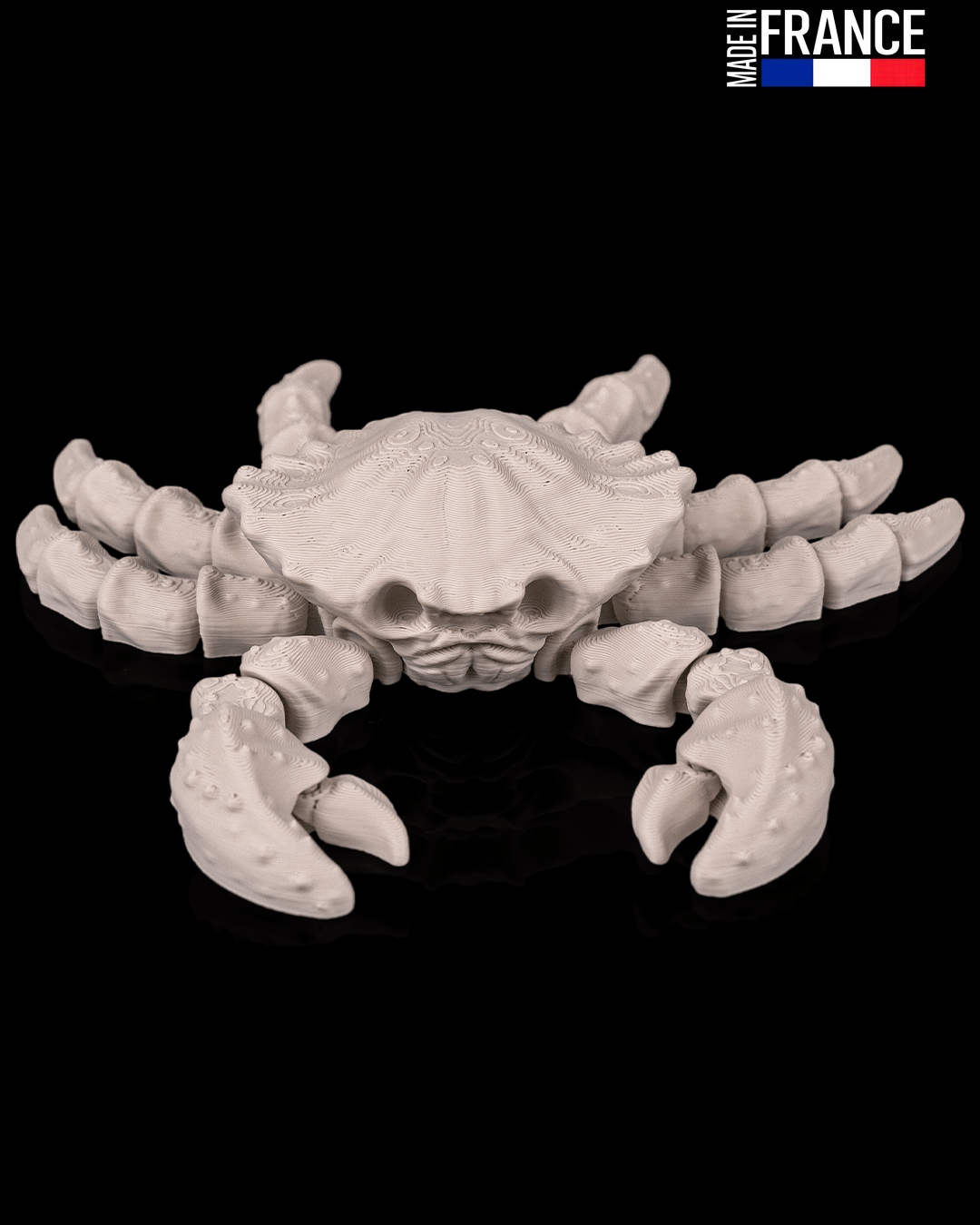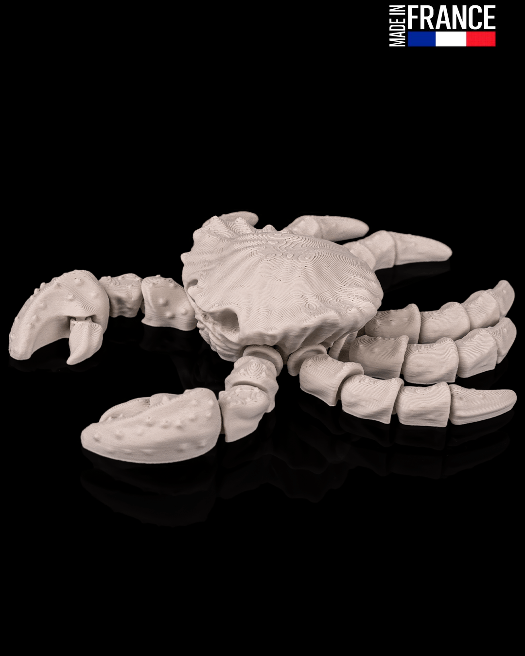 Ce crabe ne se contente pas d’être une sculpture impressionnante : il possède une articulation totale et fluide. Ses huit pattes ainsi que ses deux pinces massives sont dotées de multiples points de mouvement, lui permettant de se recroqueviller ou d’adopter des postures défensives d’un réalisme frappant. Grâce à l’ingénierie « print-in-place », ce mécanisme complexe est imprimé d’un seul bloc. Aucune pièce n’est collée, ce qui offre une solidité exceptionnelle et une manipulation tactile particulièrement satisfaisante.