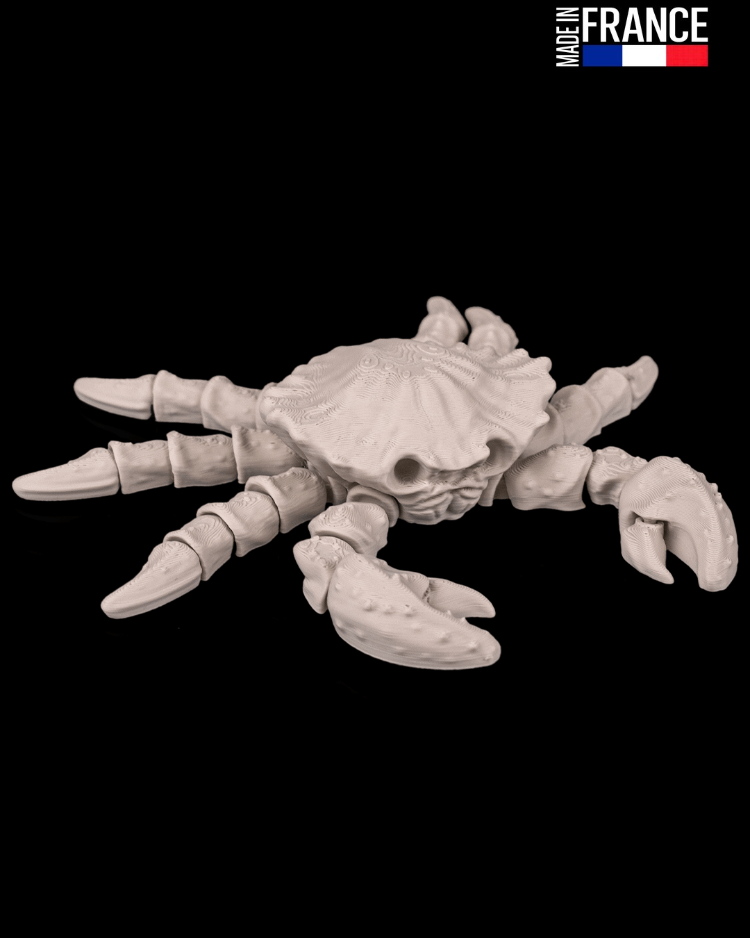 Chaque exemplaire est fabriqué artisanalement par impression 3D de haute précision, garantissant un niveau de détail incroyable sur les reliefs de la carapace et les segments des pattes. La finition mate naturelle, sans aucune peinture, imite la texture poreuse des ossements marins pour un rendu authentique et durable. C’est l’objet idéal pour les collectionneurs exigeants, les amateurs de biologie marine ou ceux qui cherchent une pièce décorative originale et mobile pour leur bureau.