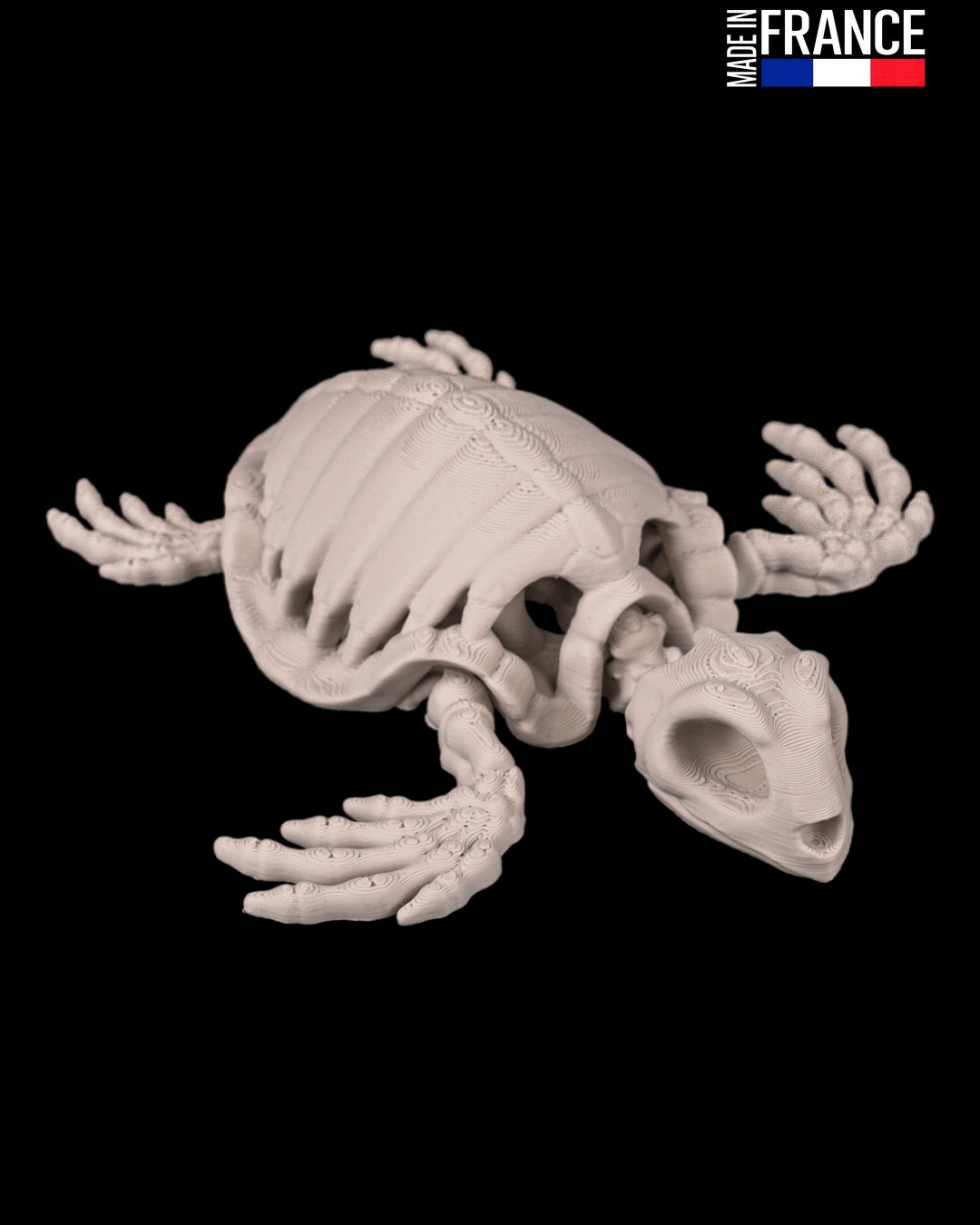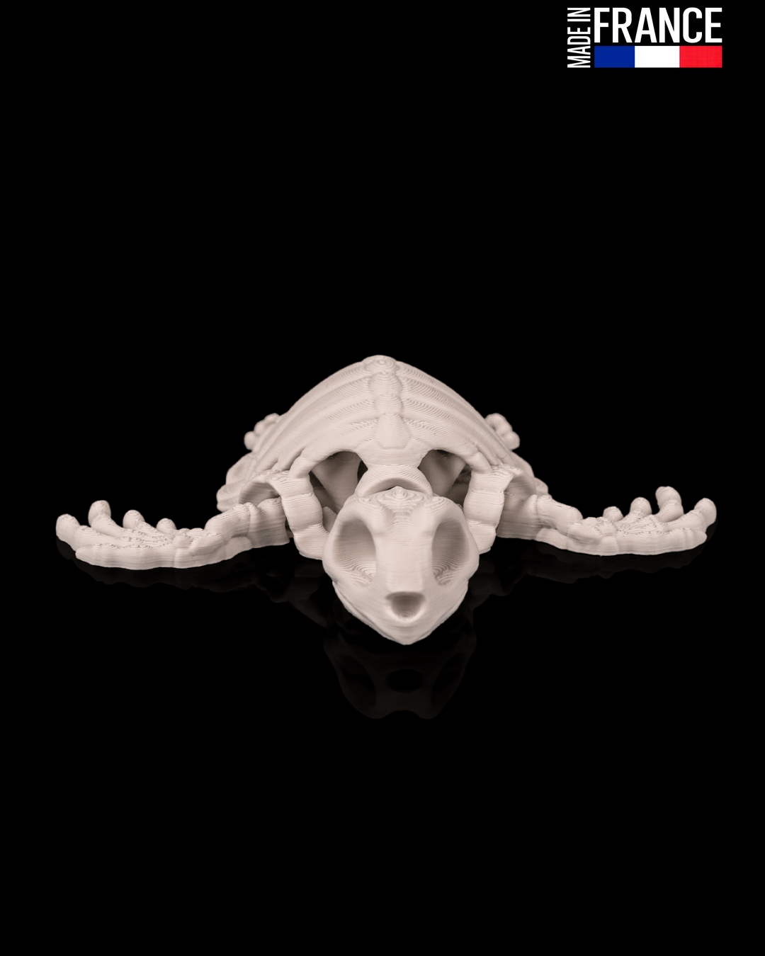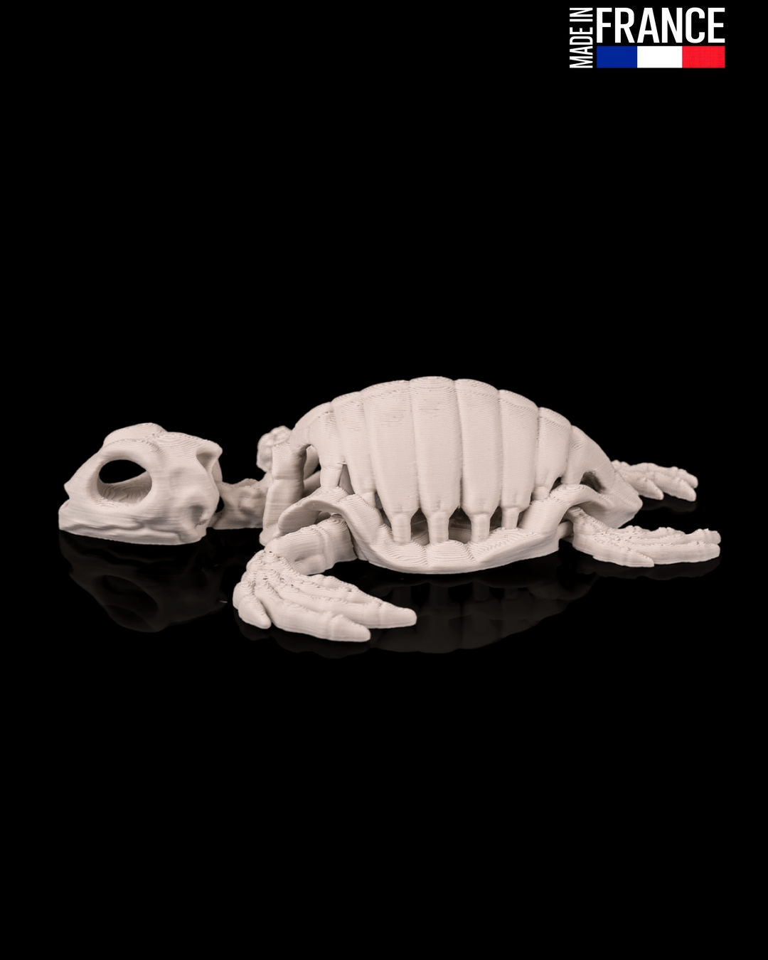 Fabriquée avec soin par impression 3D dans notre atelier, cette tortue arbore une finition mate et texturée qui imite à la perfection l’aspect des ossements anciens. L’utilisation de matériaux de haute qualité permet de souligner chaque détail, des rainures de la carapace à la finesse des nageoires, sans jamais utiliser de peinture. C’est une œuvre artisanale durable, alliant savoir-faire technologique et design organique pour les passionnés de biologie et de décoration atypique.