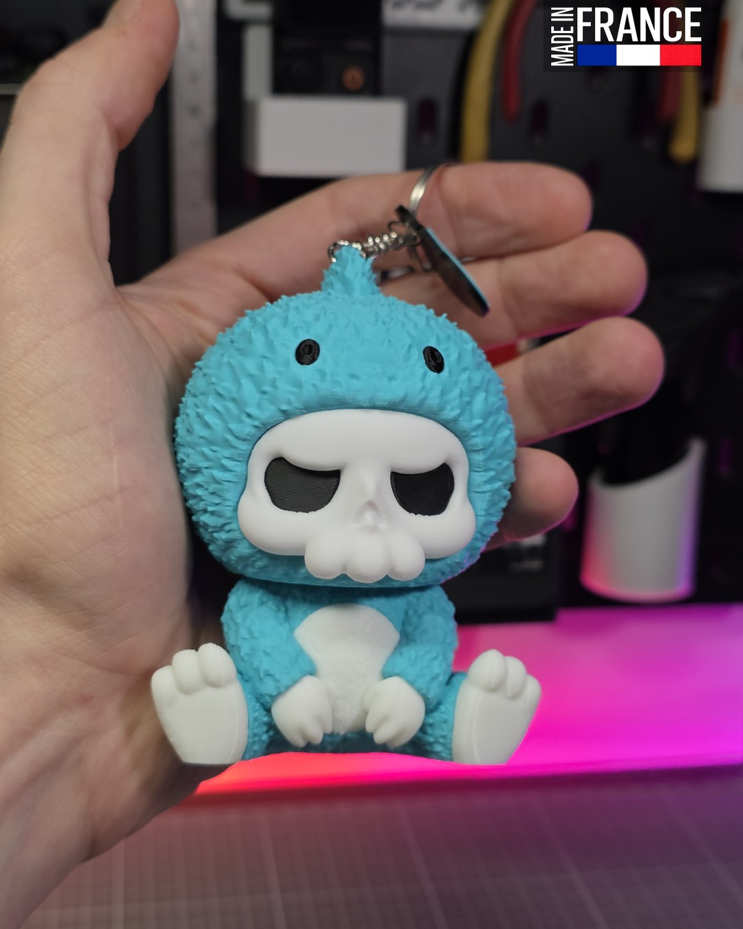 Ce porte-clés n’est pas une simple figurine en plastique : il est le résultat d’une impression 3D de haute précision utilisant une technologie multi-matériaux. Chaque détail, de la texture granuleuse de sa peau aux orbites sombres de son masque, est physiquement modélisé pour offrir un rendu tactile unique. Ce design exclusif de la collection Skubbies se distingue par sa finition soignée et son allure de petit gardien urbain.