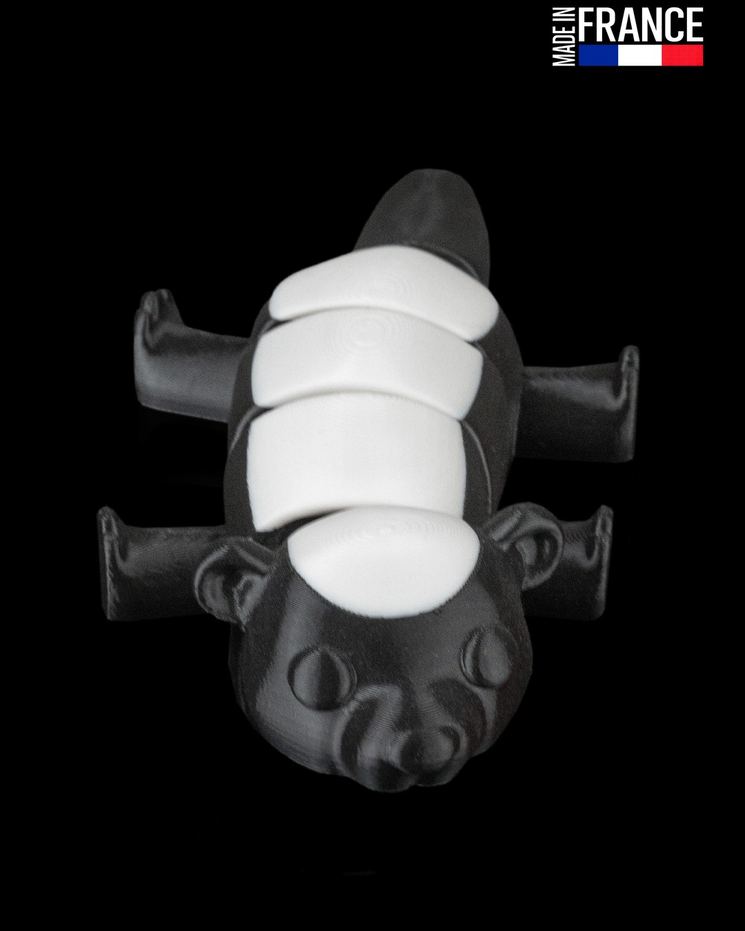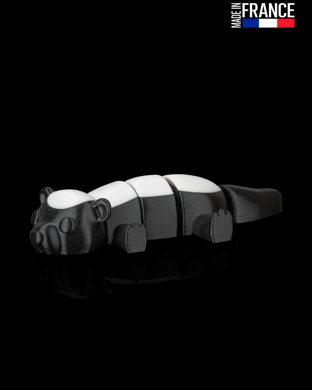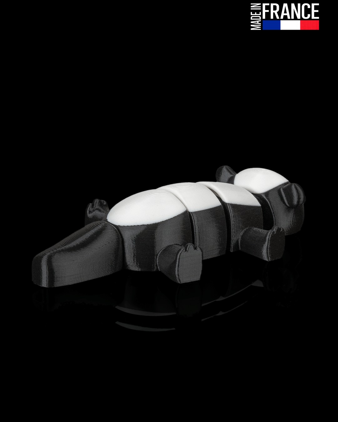 Entièrement fabriquée dans notre atelier en France, la Skunk Lounge est issue d’un processus d’impression 3D de précision. Sa finition bicolore caractéristique est obtenue sans aucune peinture, grâce à une maîtrise des matériaux qui garantit une tenue des couleurs exceptionnelle dans le temps et un aspect artisanal soigné.