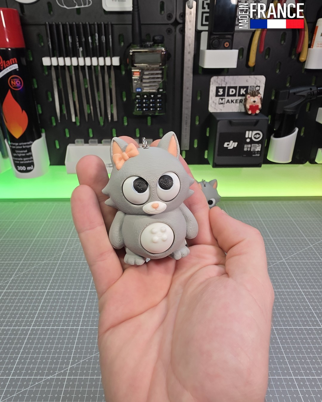 Fabriqué avec précision dans notre atelier français par impression 3D, chaque Tummy Purrs est conçu d’un seul bloc pour une solidité optimale. L’attache porte-clé est soigneusement intégrée pour garantir une fixation fiable. Alliant technologie et design « kawaii », c’est le petit cadeau original qui fait craquer à tous les coups par son originalité et son côté ludique.